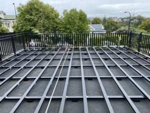 An aluminium joist and bearer system with an easy, one-size-fits-all design that supports timber decking, composite decking, structural tiles, Prograte and artificial turf.